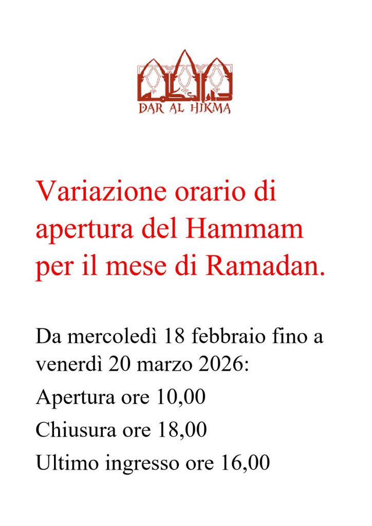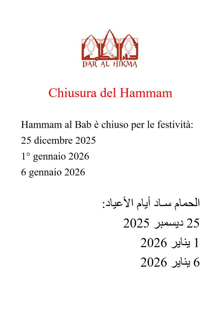 Presso il Centro si troverà così un Hammam totalmente ristrutturato, luogo di benessere ma anche di incontro sociale, un ristorante che propone pranzi veloci a mezzogiorno e più sofisticati la sera con uno chef specializzato in cucina italiana e araba, una piccola caffetteria, realizzata sul modello dei caffè orientali – gli arredi provengono infatti dal Marocco e non sono servite bevande alcoliche-, una biblioteca, l’emeroteca e una sala di lettura oltre che un’aula per lezioni e piccoli incontri specialistici..